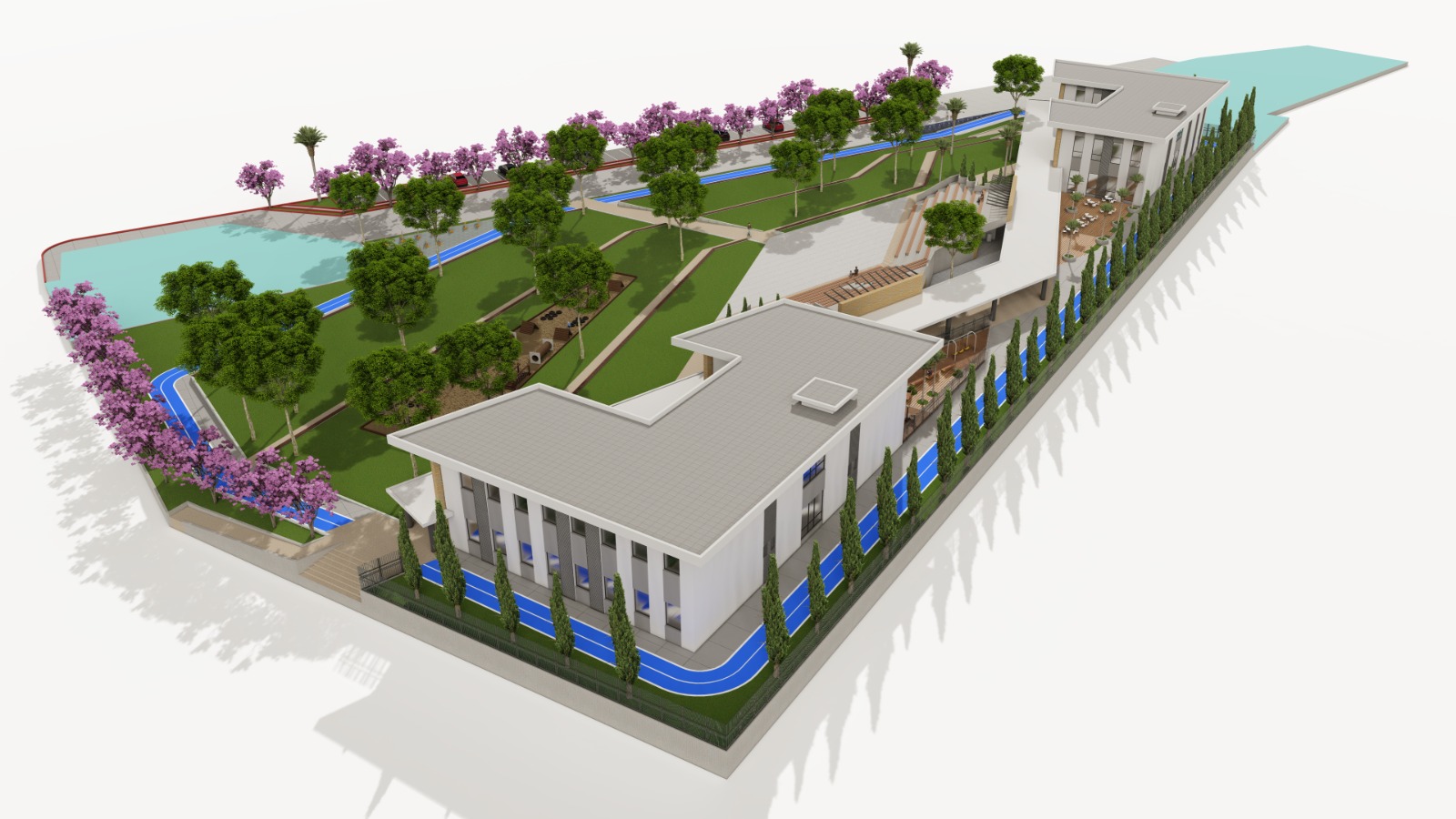 Yaklaşık 4000 m2 yeşil alan, yürüyüş yolu, açık hava sinemasına imkân sağlayacak bölüm, spor alanları ve survivor alanı bulunmaktadır